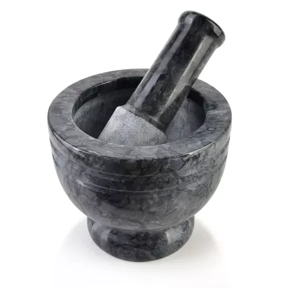Un mortier pour moudre les épices et le pesto en véritable pierre.