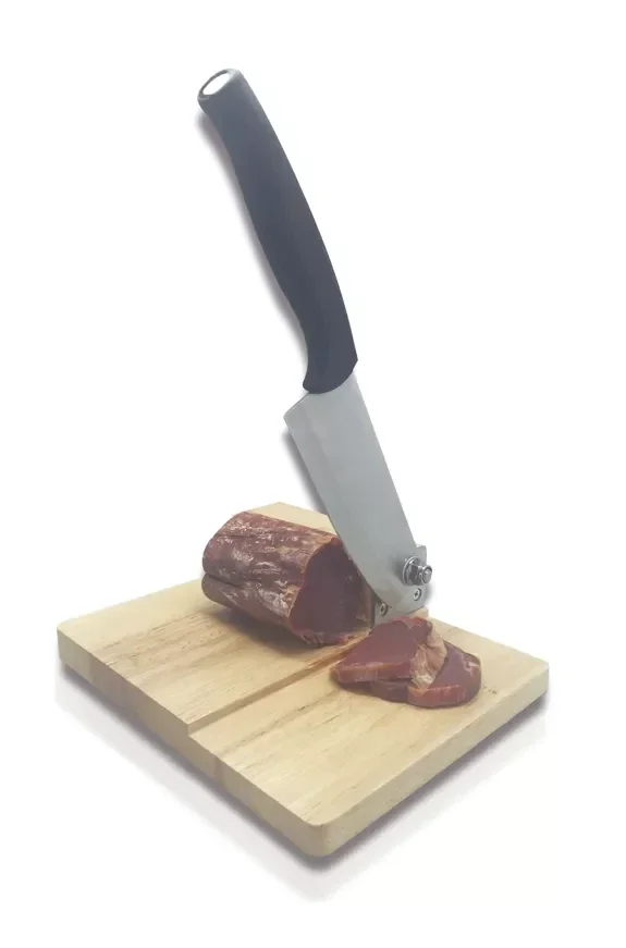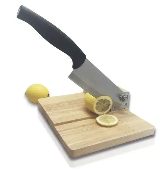 Guillotine avec sa planche à découper, pratiques avec planche en bois et couteau amovible.