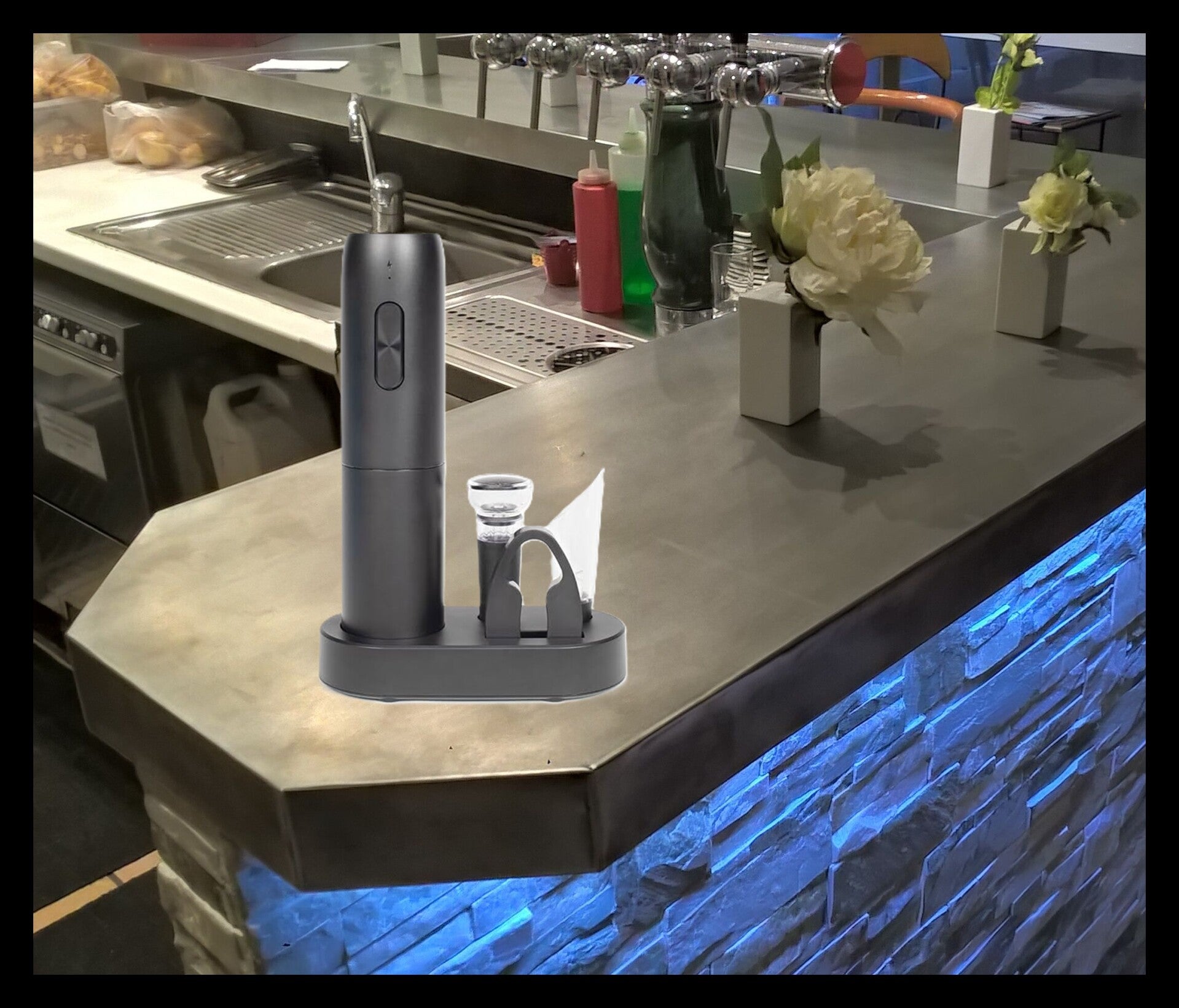 - Set à vin comprenant un tire-bouchon électrique, un coupe-capsule, un aérateur, un bec verseur et une base de rangement et de charge