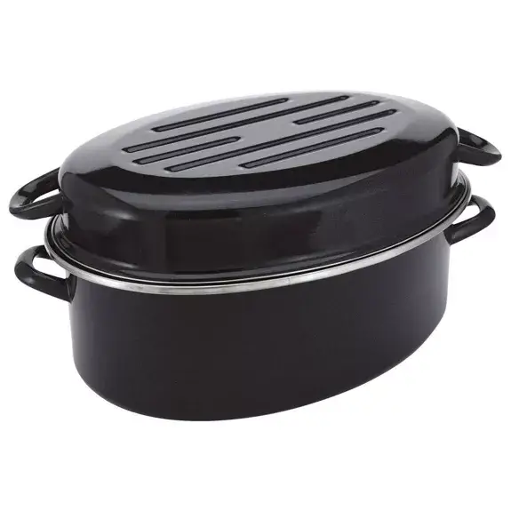 Très résistant et facile à nettoyer grâce au revêtement émaillé. Aide à garder tous les aliments humides. Auto-arrosage, toute la condensation monte puis retombe sur les ingrédients. Garde votre four propre.