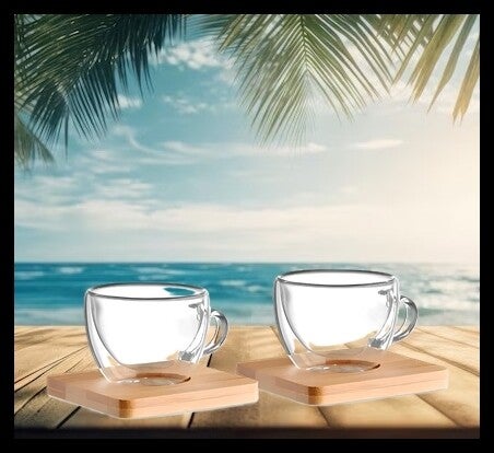 Ensemble de 2 tasses à expresso double couche avec soucoupe en bambou.