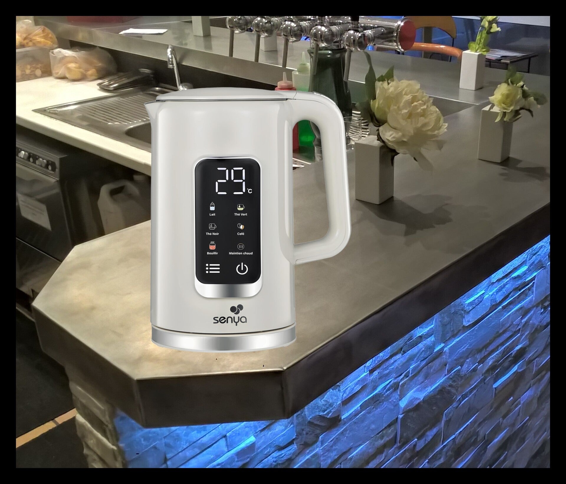 - 5 menus de température: lait 40°C, thé vert 70°C, Thé noir 80°C, café 90°C et bouillir 100°C