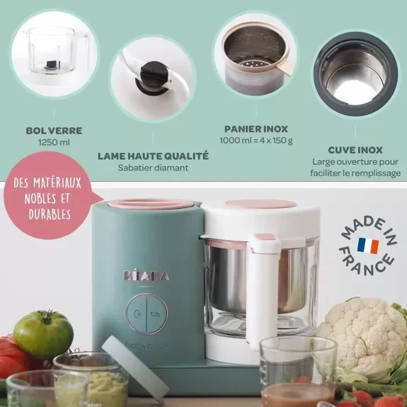 Robot 6 en 1 : Cuit à la vapeur, mixe, décongèle, réchauffe biberon, réchauffe petits pots et stérilise
