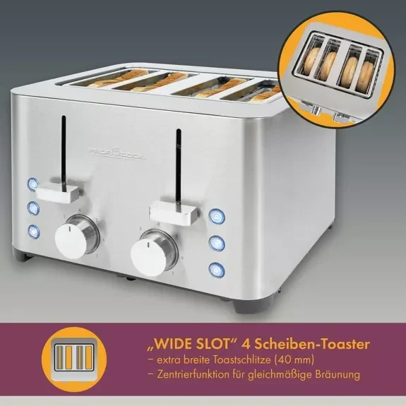 Fentes de grillage extra larges (40 mm) pour les bagels, les petits pains grillés, etc.