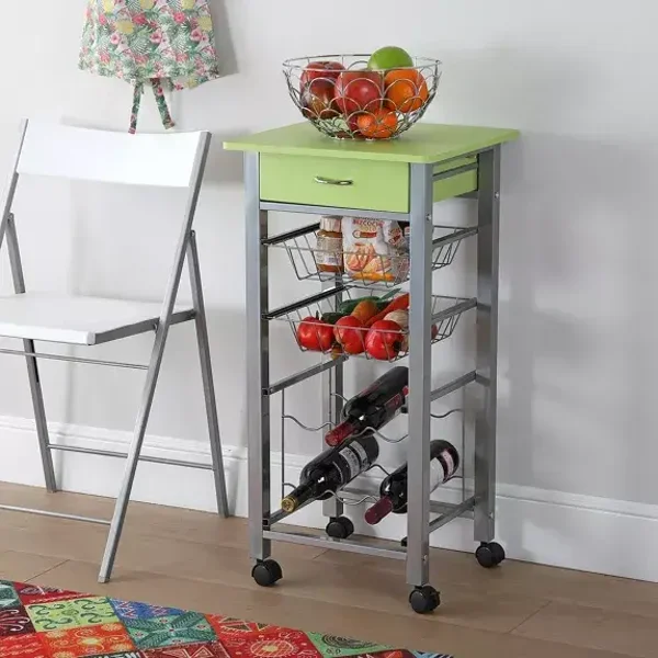 Chariot de cuisine, avec une structure de bonne qualité à roulettes et blocage.