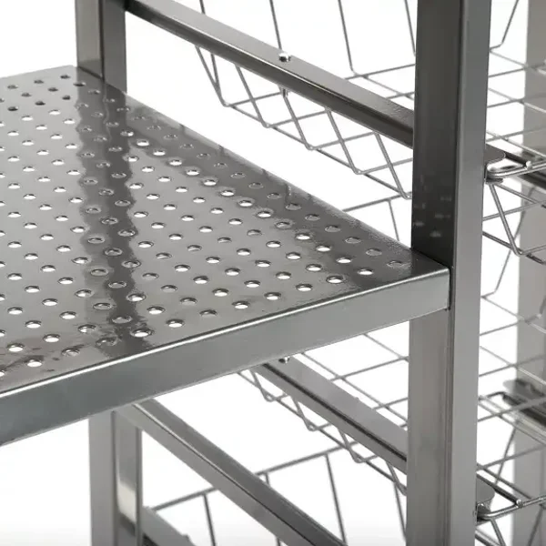 Chariot de cuisine, avec une structure de bonne qualité à roulettes et blocage.