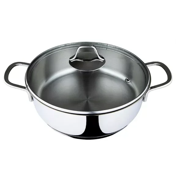 Cette marmite est de 2.64 pintes, 9.45 po, 85 oz.Sa profondeur idéale le rend parfait pour un usage quotidien. Les couvercles en verre trempé conservent la vraie saveur, la texture et les nutriments pour des plats tendres et succulents tandis que les poignées en acier à extension du corps offrent une prise sûre et sécurisée. Sans danger pour les ustensiles en métal.