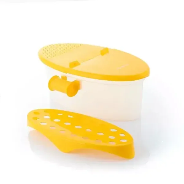 Un cuiseur à pâtes micro-ondes au design multifonction 4 en 1 original et pratique qui comprend plusieurs accessoires et de délicieuses recettes. Une aide précieuse pour gagner du temps, des efforts et de l'espace dans la cuisine. Cet ustensile de cuisine manuel complet vous permet de cuire, égoutter, remuer et servir tous types de pâtes et aliments cuits à la vapeur plus confortablement, rapidement et proprement, sans avoir à utiliser ou salir d'autres ustensiles. Il dispose d'un récipient ovale moderne, d'un fond de cuiseur vapeur avec des trous pour la cuisson à la vapeur, d'un couvercle à charnière qui peut être ouvert aux deux extrémités et dont la moitié sert d'égouttoir, et de deux poignées amovibles qui servent également de mesureur pour les portions individuelles de spaghetti. De plus, il est très simple d'utilisation, il vous suffit de suivre les instructions du manuel pour profiter d'une cuisine plus saine et moins grasse. Il est principalement utilisé pour les spaghettis, mais il est également utile pour d'autres types de pâtes, de légumes, de poisson, etc. Il est entièrement démonté pour un nettoyage facile et il est recommandé de le laver à la main, car il ne passe pas au lave-vaisselle. Il peut être utilisé à la maison, au bureau, etc.