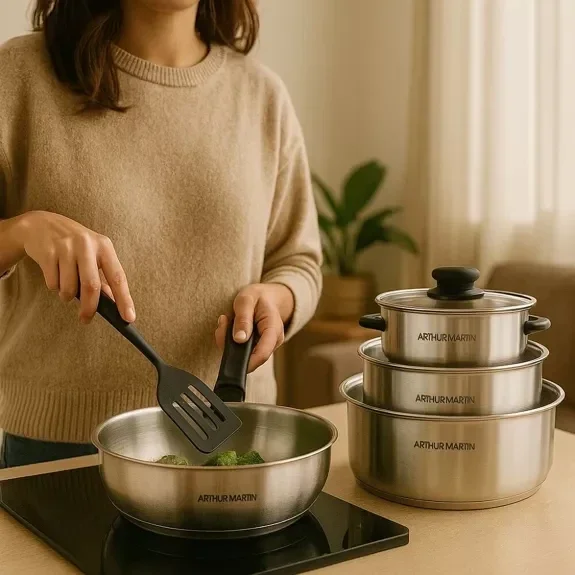 Le set de casseroles Arthur Martin avec poignée amovible allie performance, élégance et praticité. Parfaitement adaptées à toutes les cuisines, elles offrent un excellent compromis entre design moderne et qualité durable. Simplifiez votre quotidien tout en cuisinant avec style !