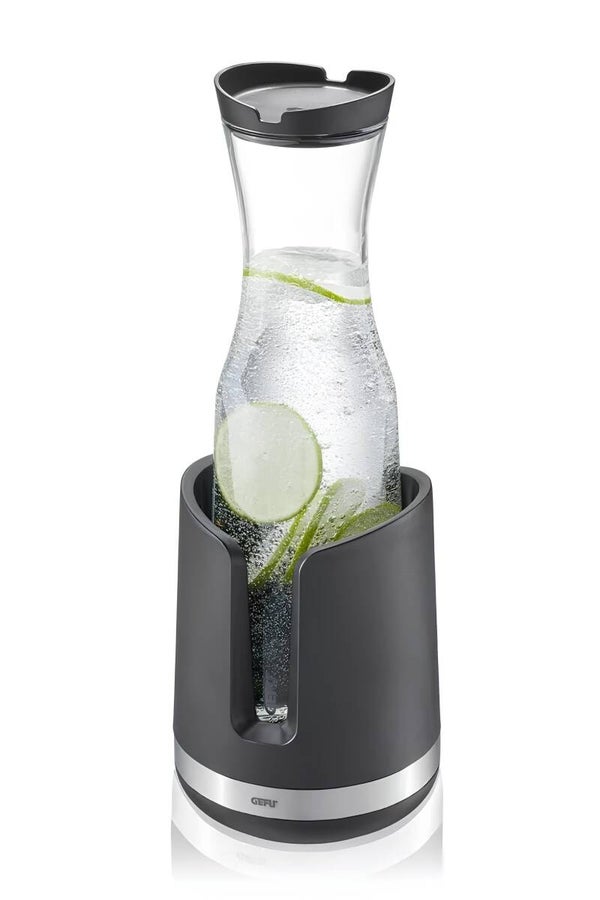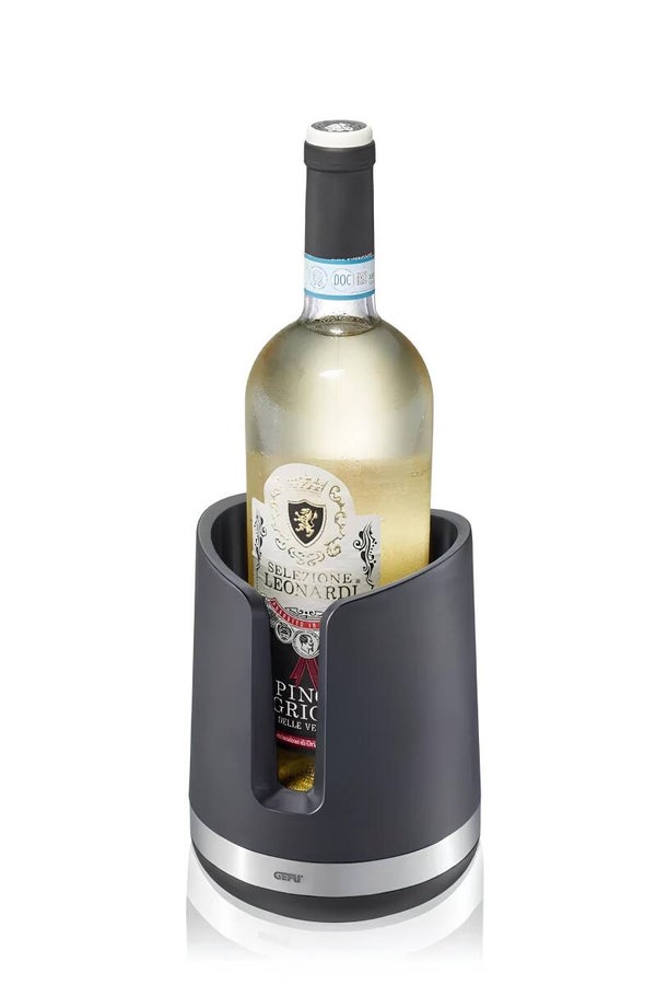 L’élégant rafraîchisseur de bouteilles SMARTLINE au look design noir mat est muni d’un accumulateur réfrigérant amovible.