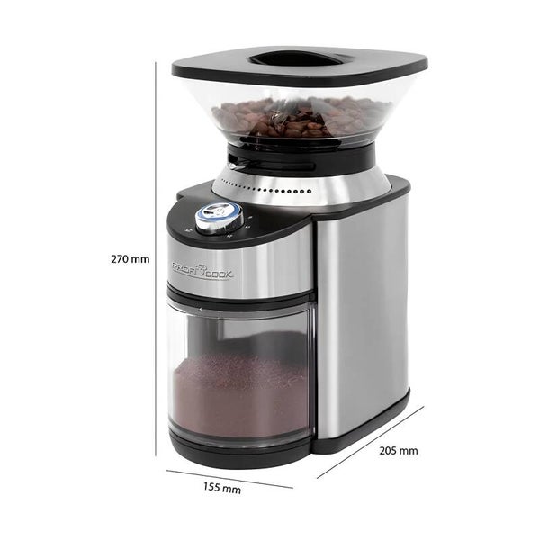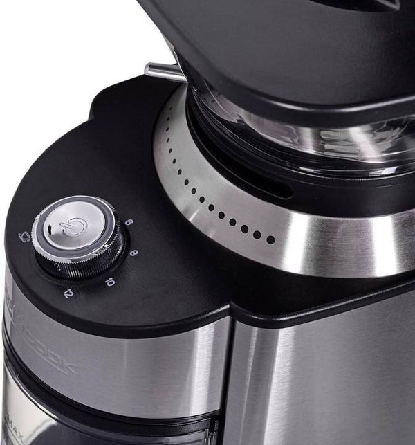 - Corps en acier inoxydableMinuterie électronique pour le réglage de la quantité de tasse souhaitéeBroyeur conique en acier inoxydable professionnel - amovible pour un nettoyage facileQuantité de tasse réglable (1 à 12 tasses)Capacité de 230 g de grains de caféBac à grains avec couvercle de protection anti-arômeBac de réception amovible (125 g)Puissant moteur de 200 wattsMouture réglable en 16 étapes (grossière à extra fine)Bonne stabilité grâce à ses pieds caoutchoutés