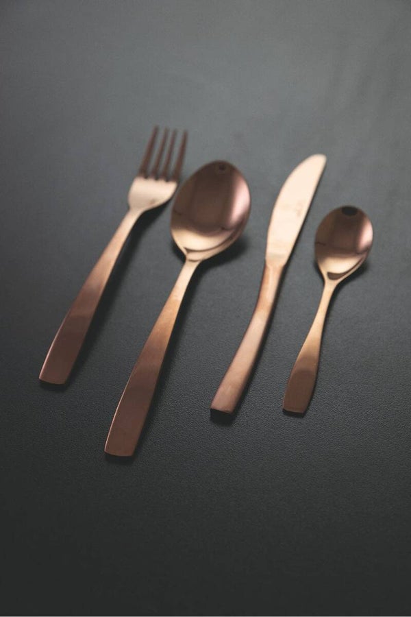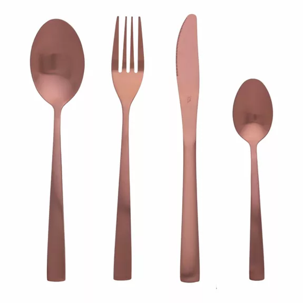 L'ensemble se compose de 6 cuillères à café, 6 cuillères à soupe, 6 fourchettes, 6 couteaux.