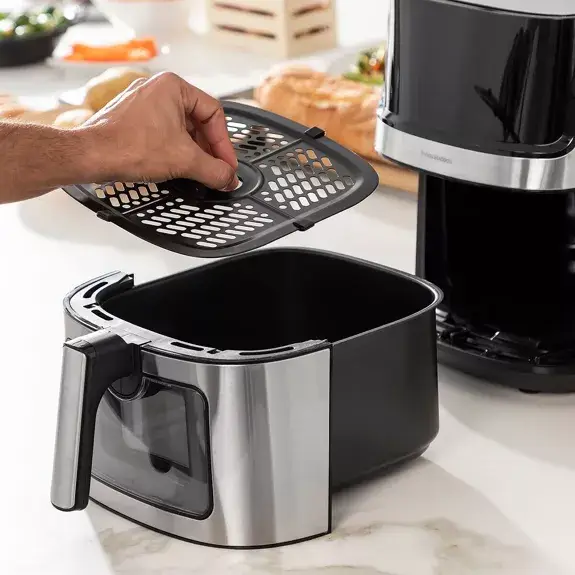 Haute qualité : la friteuse dispose d'un panier amovible conçu avec une technologie de pointe et fabriqué dans un matériau antiadhésif qui empêche les aliments de coller et permet une répartition uniforme du flux d'air.