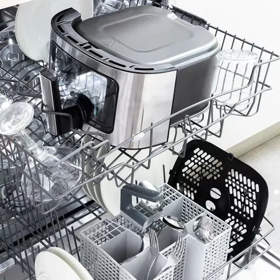 Nettoyage et entretien : Certaines recettes nécessitent l'utilisation de récipients adaptés à la friteuse, de préférence en silicone. Pour éviter d'endommager le revêtement antiadhésif du panier, il est recommandé de ne pas utiliser de récipients métalliques ou de produits de nettoyage abrasifs.
